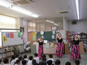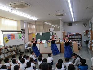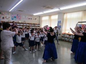 「夏のお楽しみ会」ということで、読み聞かせに加え、なんとフラダンスも見せていただきました。