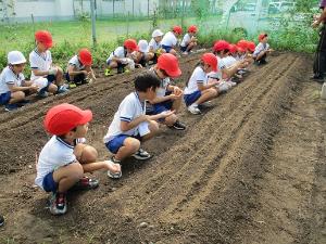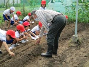 地域の方が菜園の草刈りや栄養のある土を用意してくださり、今日も植え方について教えてくださいました。