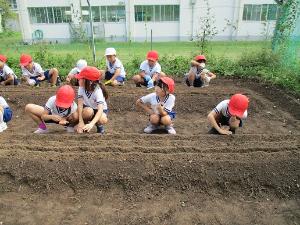 2年生と2組が、冬野菜の種と苗を植えました。