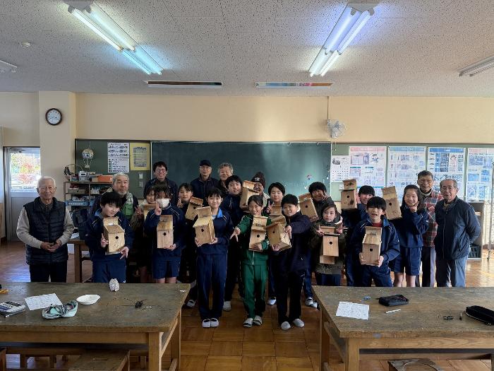 【萩小】1月27日 どんな野鳥が入ってくれるかな 5年生巣箱作り