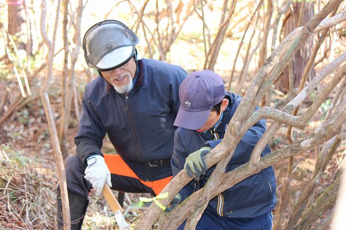 今年も恒例となっている「ミツバツツジの剪定作業」が行われました。昨年度、しっかり枝打ちをしたので、今年は打つ枝をよく選んで切らなくてはなりません。保存会の方々の指導で、とてもいい仕事ができました。終了後にはお汁粉を準備してくださり、冬空の中、美味しくいただきました。5月には一帯に萩自慢のミツバツツジが咲き誇ります。楽しみですね。