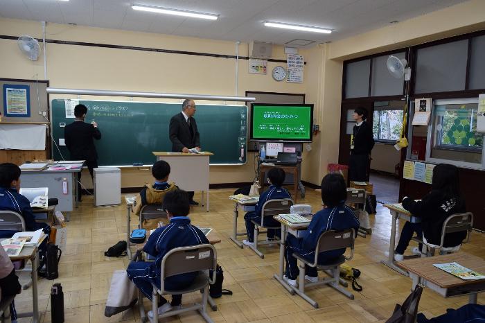 【萩小】2月17日 授業の一コマ 町内会って大切だね!3年生 出前授業