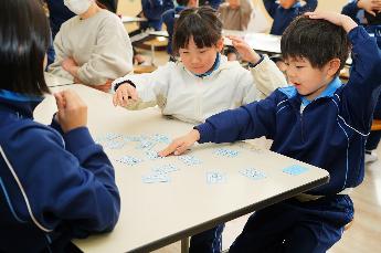 インフルエンザ予防のために延期していた「百人一首を楽しむ会」が開催されました。これまでの成果を発揮する場です。このところみるみる力をつけ、上の句で取れる札が少し増えたようです。グループで一番たくさん取れた人はグループを移動していきます。対戦者を変えながら、百人一首を楽しみました。最後に、「楽しかった人~!」「は~い」と大多数の子が手を上げました。楽しめることができたのなら本物です!