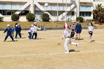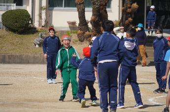 卒業が近づく6年生。今年度取り組んできたたてわり遊びも今日が最後です。カワセミ班は「ドッジボール」、オオルリ班はかいぞく「ドッジ」、キビタキ班は「けいどろとふえ鬼」、メジロ班は「けいどろ」で遊びました。6年生は、遊びの指示を出します。暖かな日和の中、運動場では全力で走ったりコートの中を駆け回ったり、汗を流しました。終了後、集合すると、6年生への感謝の気持ちがこもったあいさつができました。