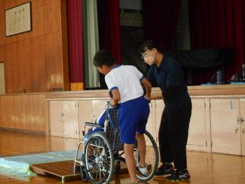 6年生が福祉実践教室を行い、車いす体験と手話について学びました。普段歩いているときには気にしない段差ですが、車いすを使うと乗り上がることがとても困難であることがわかりました。また、話すときの口の形から何と言ったかを予想しましたが、「月」「好き」「石」「土」「牛」など候補が出て、口話の難しさと手話の役割を学びました。この学習を通して、思いやりの心で助け合おうという気持ちが高まりました。