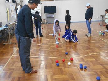 また、午後はPTAの方による「一南ブルーフェス」が行われました。今年度はニュースポーツ大会を企画・運営していただきました。ドッチビー・モルック・ボッチャに初挑戦する子も多く、会場はとても盛り上がりました。