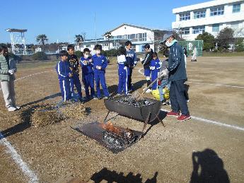 前日、子どもたちは一つ一つ丁寧に新聞紙とアルミホイルで包みました。福祉会の皆さんは前日に炉と薪の準備、当日は早朝から火を起こす準備をしてくださいました。追加の薪を運んだのは6年生、全学年の炉に十分な火ができるようにとせっせと運んでくれました。1時間かけて燠(オキ)を作り、サツマイモを投入、「おいしくなあれ」の呪文を唱えると・・・1時間後にねっとり黄金色に輝く焼きいもができました。最高においしい味でした。福祉会の皆さん、ありがとうございました。