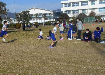 走ることが得意な人も苦手な人も自分の目標の距離やタイムをめざして走りました。「がんばれ~」と応援する声は、走っている人たちのパワーになったことでしょう。また、高学年は、準備や周回(何週走ったか)の確認の仕事も責任をもって行ってくれました。小さなハッピーあふれる一日でした。