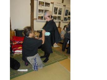 10月26日は、音羽地区にある杉森八幡社において「赤坂の舞台伝統芸能公演」が行われ、歌舞伎クラブと有志による11名で演目「弁天娘女男白浪―稲瀬川勢揃いの場―」を発表しました。前日のリハーサルや当日化粧や衣装合わせをするうちに緊張が高まりましたが、クラブでの練習の成果を発揮して堂々と演じました。「やってよかった、楽しかった」という達成感と「来年は○○をやってみたいな」という意欲があふれていました。一宮南部小学校ならではの活動ができました。講師の先生、保護者の皆様、金沢歌舞伎の関係者の皆様、ありがとうございました。