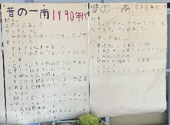 今週は、一宮南部小学校50周年を祝うハッピーウィークです。お昼の放送の時に6年生が「前の一南にあって、今はない遊具は何でしょう?」「今の校長先生は何代目でしょう?」など、一南小クイズを出題してくれます。3年生は「1980年代」と「1990年代」の様子を調べてまとめました。また。6年生、保護者、地域の方のお気に入りの風景や物の写真展も開催しています。そして、児童会の皆さんが、木曜日に全校レクを計画しています。楽しみですね。