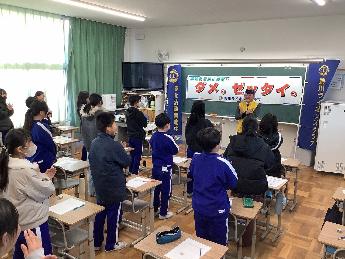 6年生がライオンズクラブの皆さんによる薬物乱用教室を行いました。薬物にはどのようなものがあるのか、薬物が与える影響などについて学びました。禁止されている薬物だけではなく、普段使うくすりも用法・用量を間違えると薬物乱用になること、自分の心や体、脳にまで悪影響を及ぼすことを教えていただきました。正しく使えば、私たちにとって大切なくすり。しかし、遊びとして誘われた時には、合言葉「ダメ。ゼッタイ!!」でしっかり断りましょう。