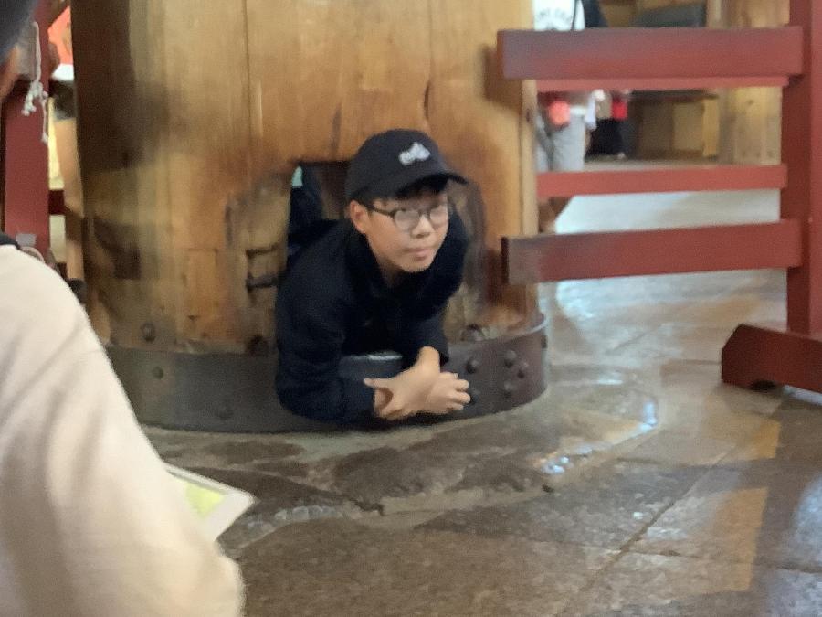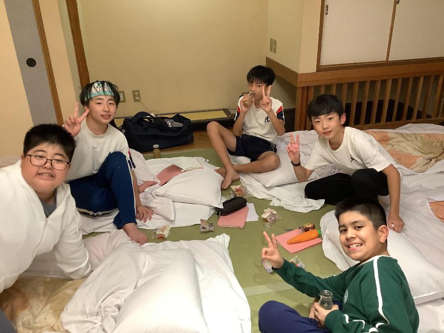 1日目の京都は少し雨に降られることもありましたが、京都の歴史的な建物を見学しました。清水寺では、人の多さに驚きながら、班で協力して、楽しくお土産も買いました。旅館では、おいしい夕食を食べたり、温かいお風呂につかったりして、1日目の疲れを癒しました。夜の班長・部屋長・実行委員会では、自分たちの活動をふり返り、よりよい修学旅行にするためにどうすればいいかを考え、話し合い、2日目の目標を立てました。自分たちで、どうすればいいかを考える姿が立派でした。