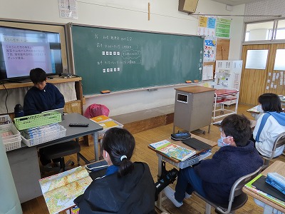 社会科の学習で、愛知県のおすすめの市町村調べをして、4年生の先生に発表しました。どの発表も、特産品や見どころなどをくわしく調べられていました。