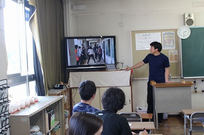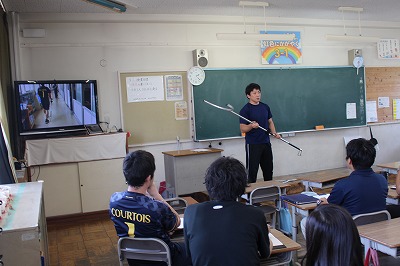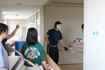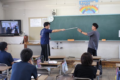8月18日(月曜日)、全校出校日の午後に、教員向けの「不審者対応研修」を行いました。今回は豊川警察署の方をよんで、実際に不審者が学校に来たときの対応について実際の場面を想定して行いました。