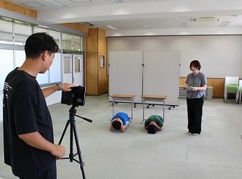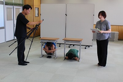 安全担当が地震発生時の正しい姿勢についての話をしました。