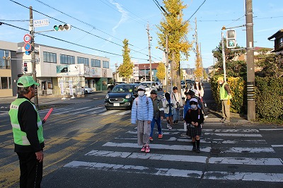 12月10日(水曜日)、交通安全日です。子どもたちの登校時としては12月最後の交通安全日となりました。