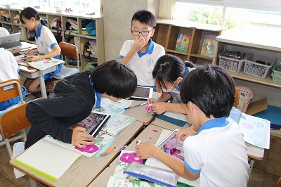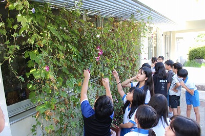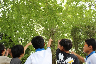 5年生ま理科では「植物の実や種子のでき方」という単元を行っています。アサガオの花を観察したり、顕微鏡で花粉をのぞいたり、そしてイチョウの実を観察したりと体験的な活動を多く取り入れました。