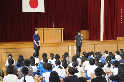 最終日の全校集会では、感謝の意を述べるとともに、教師になろうという思いを子どもたちへ伝えていました。