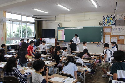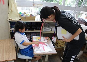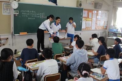 最初は緊張も見られた2人の実習生も、すぐに現場の雰囲気になじみ、子どもたちと休み時間は会話をしたり、運動場で遊んだりと打ち解けていました。そして、肝心の授業もしっかりと自分で計画を立て、そして行うことができていました。