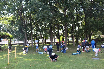 10月に入り、外掃除では、ずっとイチョウの木の銀杏拾いをしてきました。ようやくその銀杏拾いが落ち着いてきたので、次は生き物の森のそばの草地に行き、ドングリ拾いが始まりました。