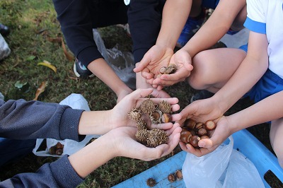 このドングリは、1年生の生活科の秋見つけの授業で使います。ドングリがたくさん落ちている場所は、車の駐車場にもなる場所で、拾わないと踏みつぶされてしますます。そのため、外掃除総出で集め、1年生の先生に届けました。まだしばらくはドングリ拾いがつづきそうです。