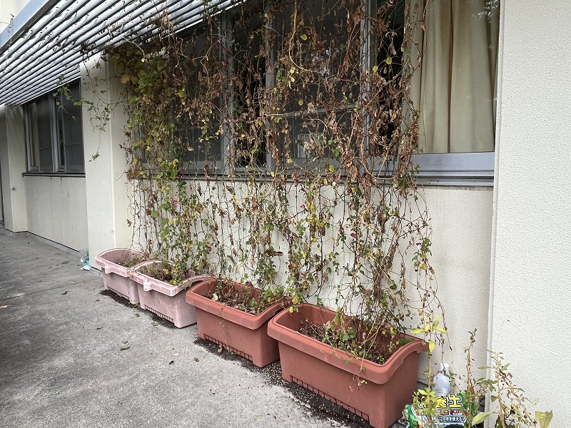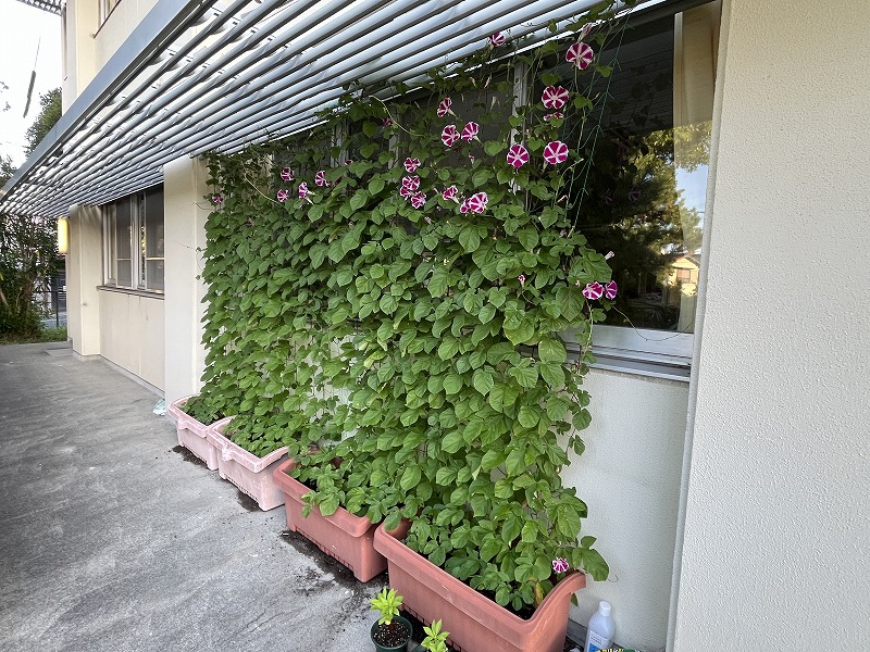 11月に入り、朝晩はすっかり肌寒く感じる日が増えてきました。いろいろな植物が、濃い緑から姿を変えてきています。図工室の横に「緑のカーテン」として設置していたアサガオも、多くの葉が枯れてしまっています。それでも、よく見ると、何輪かは、変わらずきれいな花を咲かせています。そういう中に、植物の生命力の強さを感じます。