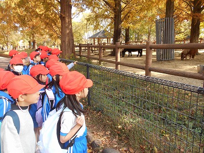 11月21日(金曜日)、1・2年生がのんほいパークへ遠足に行きました。当日は雲がほとんどない澄み切った秋空で、まさに遠足日和でした。