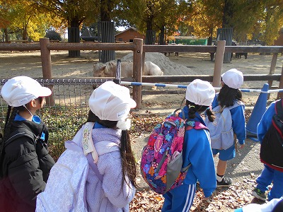 今回の遠足では、班別学習に加え、ゾウの飼育についての団体プログラムを聞くことができました。ゾウの飼育の秘密をたくさん知ることができました。班別行動は、2年生が1年生のお世話をしっかりして、安全に、楽しく園内を散策できました。