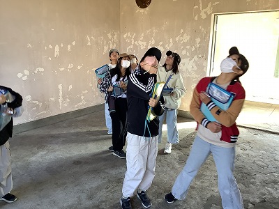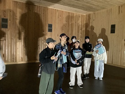 午後の豊川海軍工廠平和公園の見学では、案内ガイドによるツアーでしか見ることができない火薬庫の中や信管置場の見学もしました。戦争末期の、若者が働きに来ていた東洋随一の巨大軍需工場と、その空襲の内容をしっかりと子どもたちは学ぶことができました。