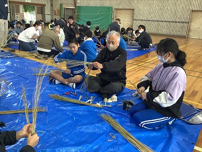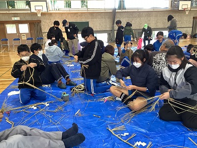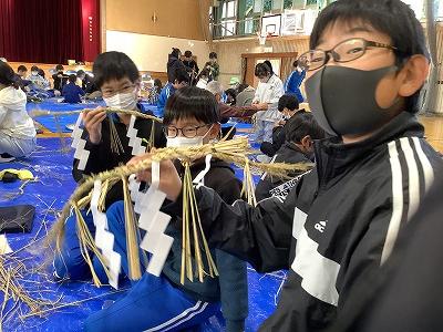 子どもたちの多くはしめ縄をつくったことはありませんでした。縄をなう過程は最初だいぶ苦戦していたようですが、次第に要領よくうまくつくれました。ぜひ、家庭に持ち帰って、正月等に飾ってほしいと思います。地域の伝統的な行事に触れた1日となりました。