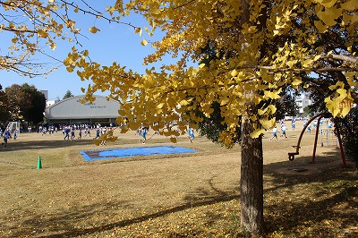 1年に1度しかみられない、この黄色い絨毯。子どもたちは休み時間に思い思いに遊んでいます。