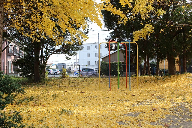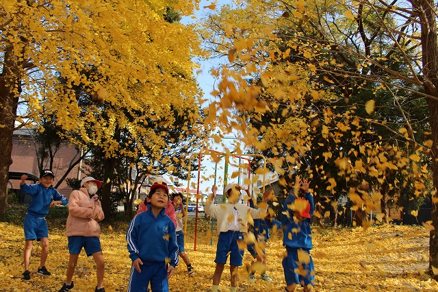 校内のイチョウがすっかり黄色く色づきました。そしてその黄色い葉っぱが落ち葉として地面に敷き詰められました。まるで、黄色い絨毯のようです。