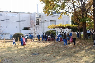12月8日(月曜日)、環境委員会が主催で、全校落ち葉拾い大会が行われました。すっかり先週の寒さで樹々は葉を落としました。そこで、普段の清掃とお昼休みの時間を用いて、一気に落ち葉を集めました。