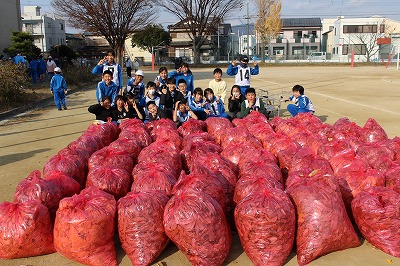 全校で取り組むと、その成果は抜群です。わずか20分あまりで150袋近くの落ち葉が集まりました。全校のみなさん、ありがとう。校内がとてもきれいになったね。