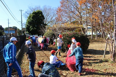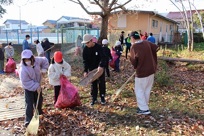 12月も下旬になり、すっかり落葉の季節です。生き物の森周辺は、落ち葉が目立つようになりました。この時期の掃除では、普段より多くの子たちが参加して森の外に落ちた落ち葉を集めてくれました。