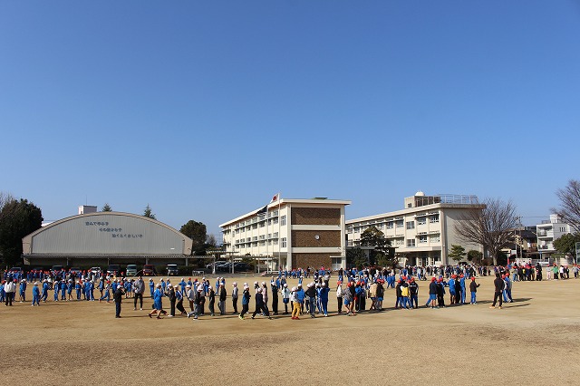 本校では、体育委員会が主催して2月4日(水曜日)に長なわ大会を行います。そこに向けて、1月19日(月曜日)から長なわ週間が始まりました。初日はさっそく20分の休み時間に運動場に全学年が集まって練習が行われました。