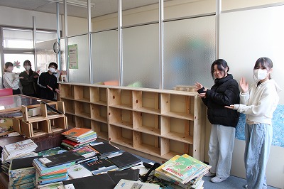 図書室の本棚は、以前から1ヶ所老朽化していて、問題がありました。今回、そこを木製の本棚で更新することにしました。