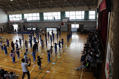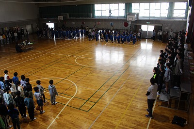 校歌。卒業式は4年生以上が参列なので、全校で歌うのはこれが最後になります。