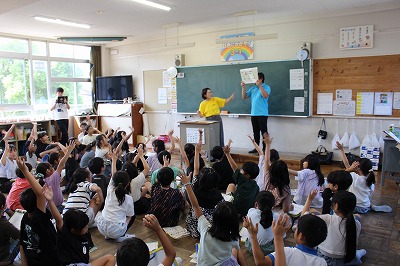 9月16日(火曜日)、3年生が豊川観光協会の方をお招きして「豊川もりあげ隊出前教室」を行いました。豊川には、いろいろな豊川ブランドがあります。そのブランドの概要や、ブランドにかける思いについて、クイズを交えて楽しく教えていただきました。