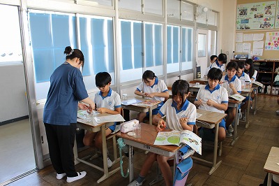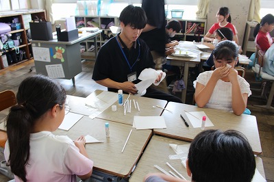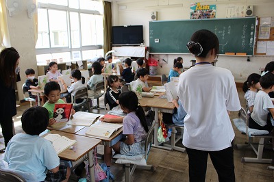 9月当初から24日(水曜日)まで、2名の大学生が授業支援に来ていました。実際に授業のサポートをするだけではなく、授業で必要な物品の準備をしたり、校地の整備をしたりと、さまざまな場面で活躍してくれました。