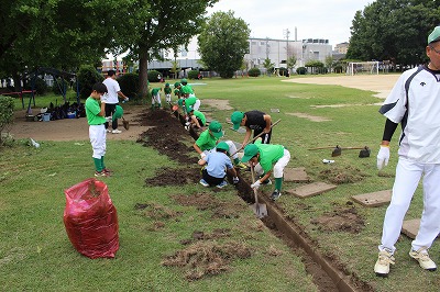 おやじの会の方は草払い機で伸びた草をどんどん刈り取ってくださいました。