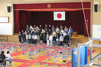 令和7年度0312 卒業式予行 更新日:2026年03月12日 ページID : 28551 3月12日(木曜日)、卒業式の予行が行われました。本番を想定して通しを行いました。いよいよ卒業まで1週間です。よい旅立ちができるよう、6年生とともにがんばります。 全体の様子。 卒業生は前方に。 授与は舞台上で。 「別れの言葉」はひな壇で。
