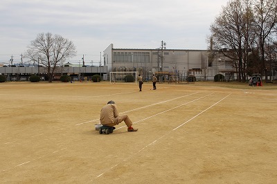 50mトラック2レーンと、150mトラックの一部を張りなおしました。