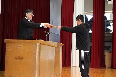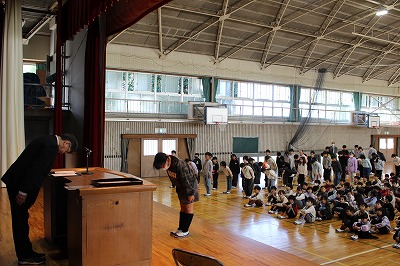 6年生が旅立ち、少し広くなった体育館で、学年の代表が修了証をもらいました。