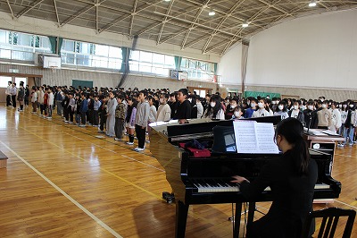 校歌をみんなで大きな声で。