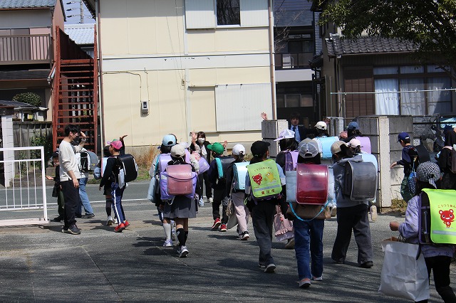 最後は一斉下校。「来年度も元気に登校しましょう」の声に、みんな大きな声で「はい」と応えていました。