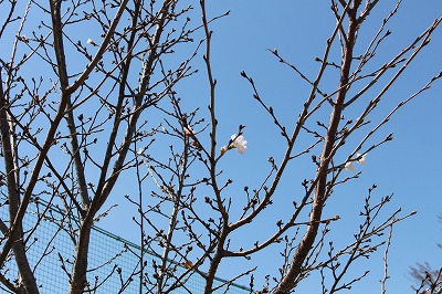 更新された若木のため、他の桜より開花が遅れていた桜木小の桜ですが、3月23日(月曜日)、咲き出しました。1輪・2輪と淡いピンクのかわいらしい花が姿を見せています。いよいよ、桜の季節がやってきました。