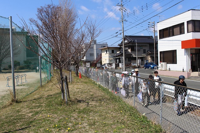 3月23日は一斉下校。桜の花とともに。