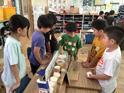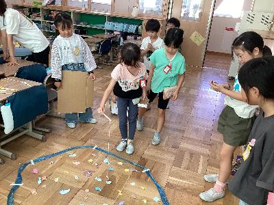 それぞれのグループで楽しいゲームが完成し、10月9日(木曜)に1年生を「おもちゃランド」に招待して遊びました。